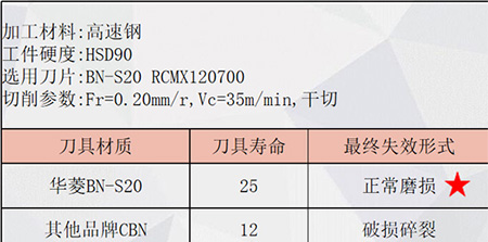 華菱BN-S20刀片壽命是其他CBN壽命的2倍!