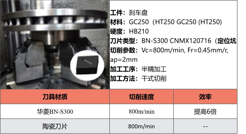 CBN修光刃刀片精車剎車盤的案例參數: